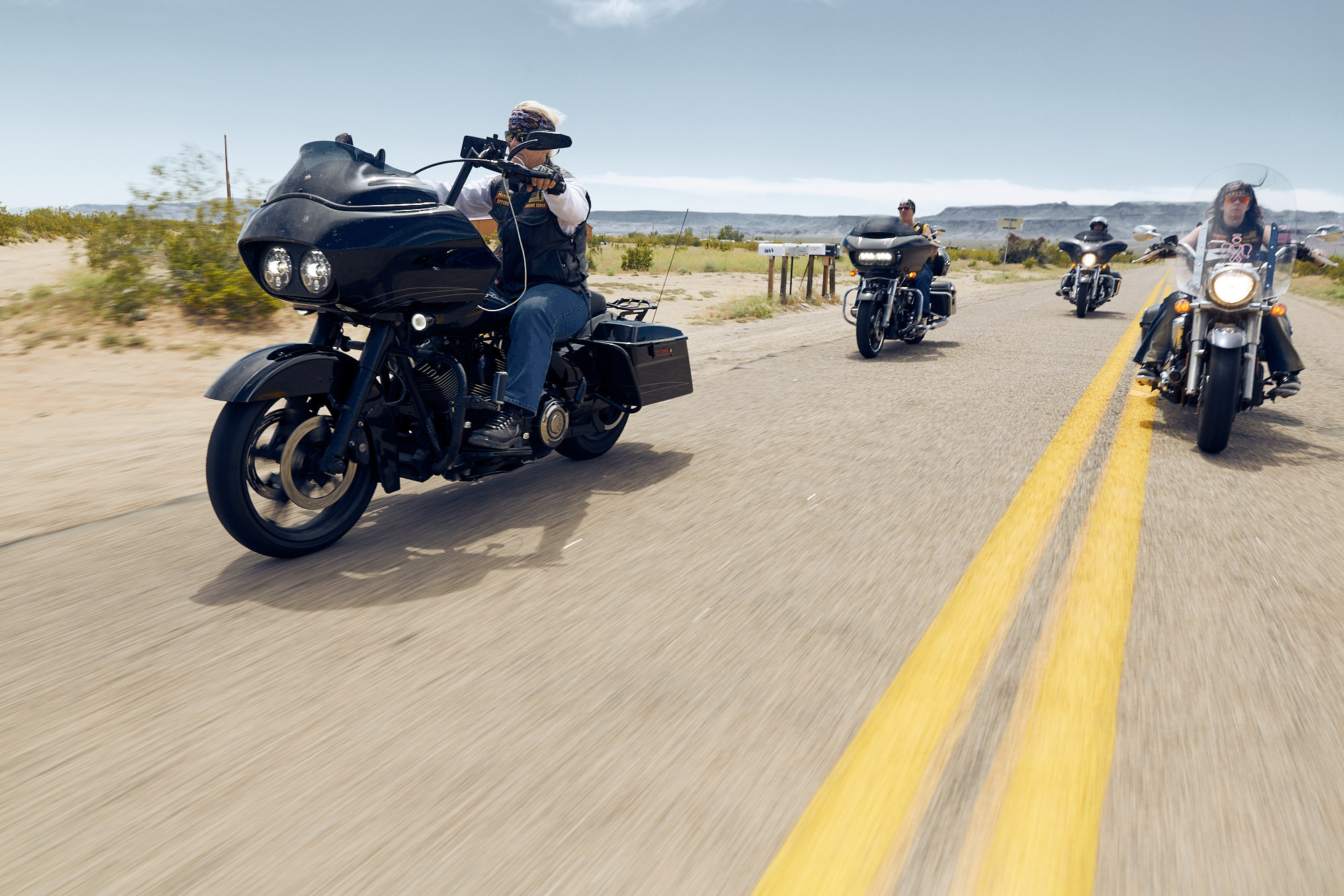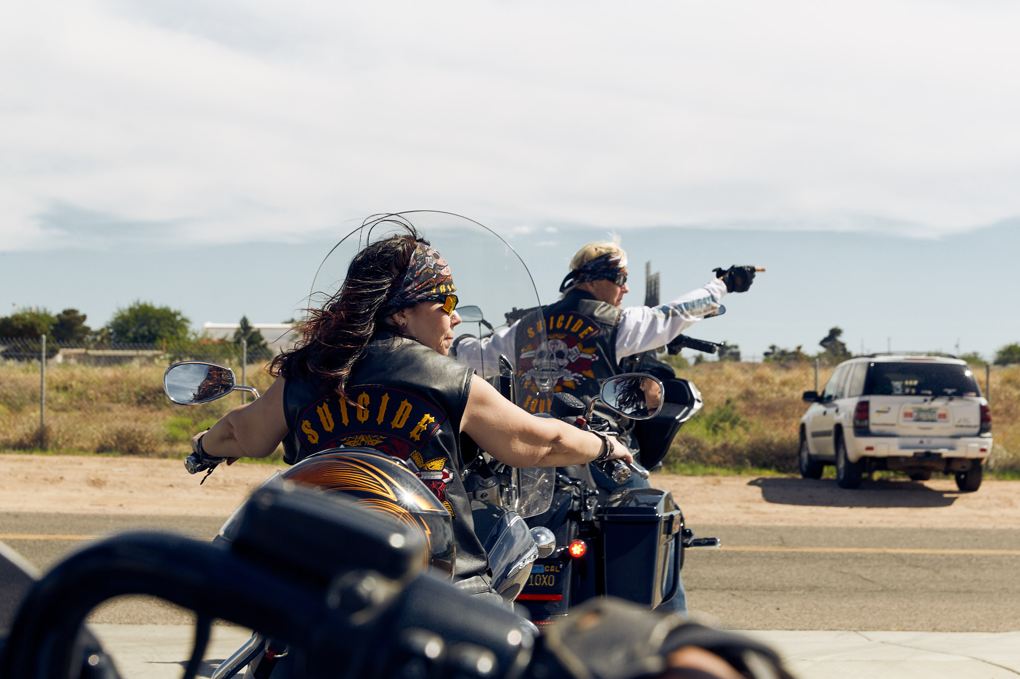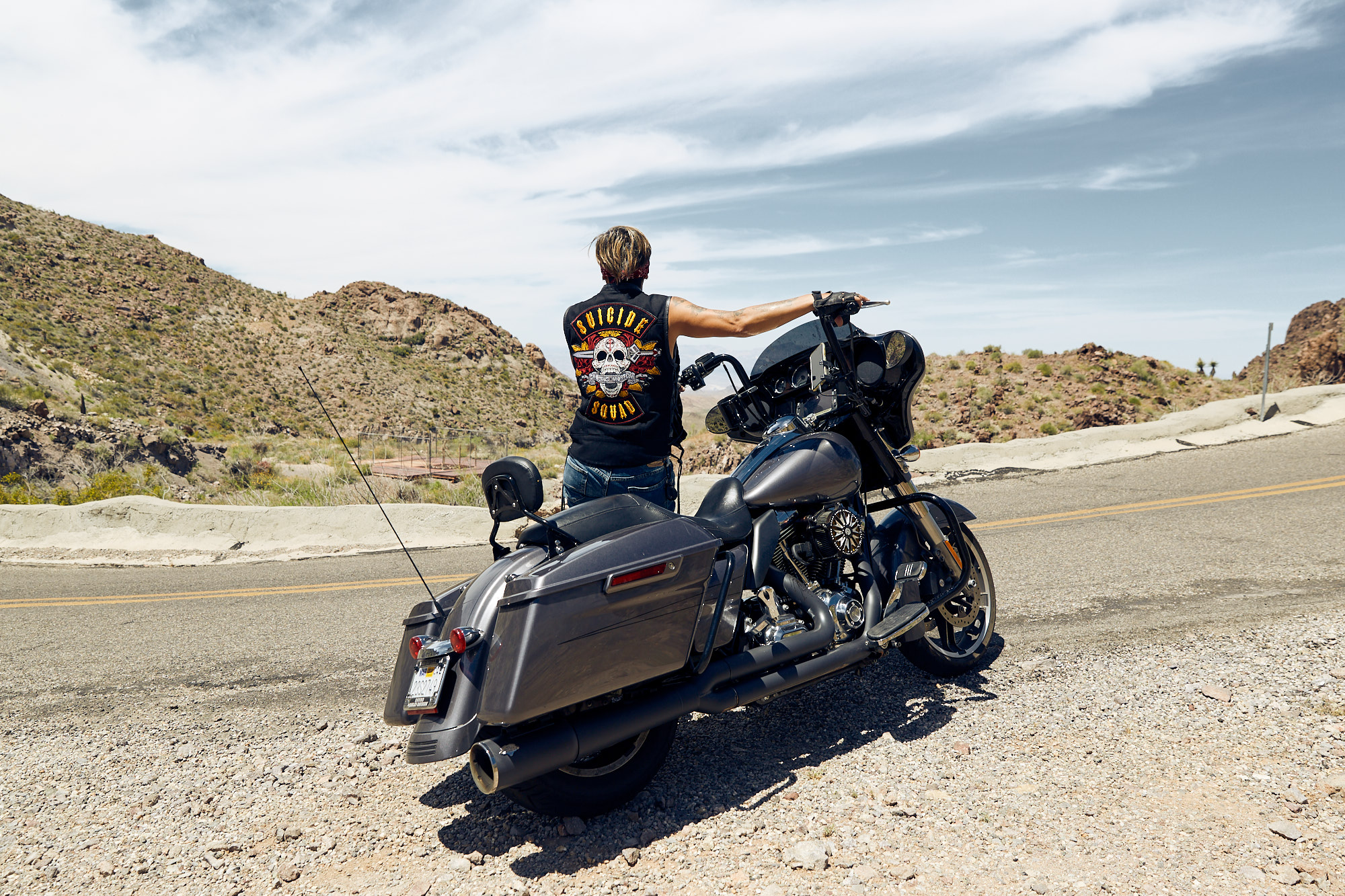 A small female motorcycle group called »Suicide Squad« invited me to join them at the »Laughlin River Run 2019«. I accepted and my first motorcycle trip ever started – roaring Harleys, 103° Fahrenheit and a lot of wind in the face. We rode the bikes through Arizona and Nevada. A story shot by the male on the bitch pad.