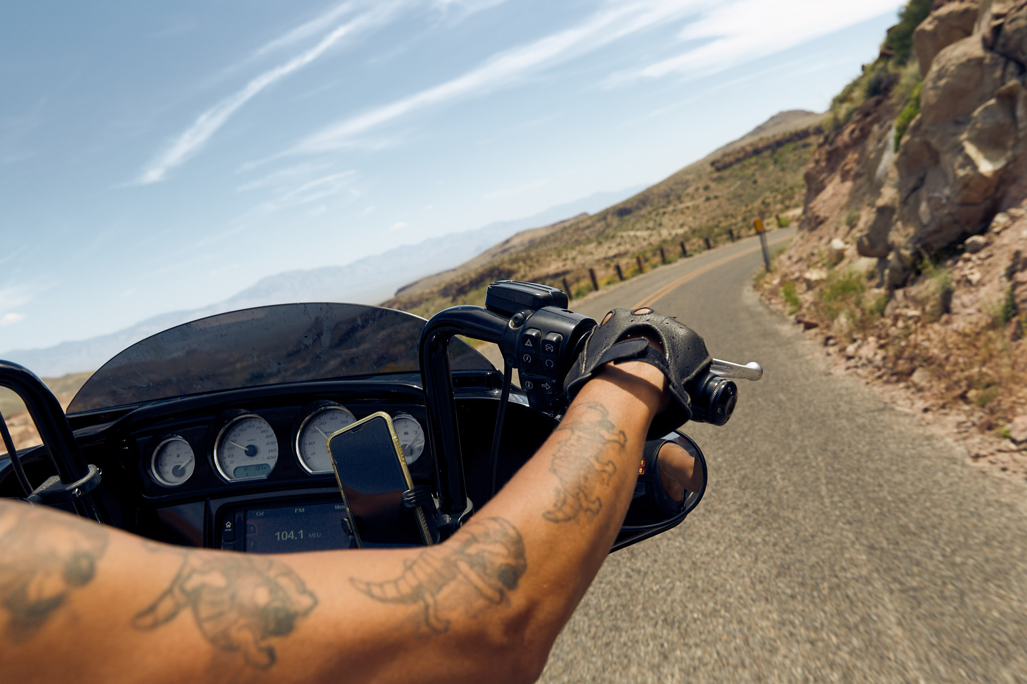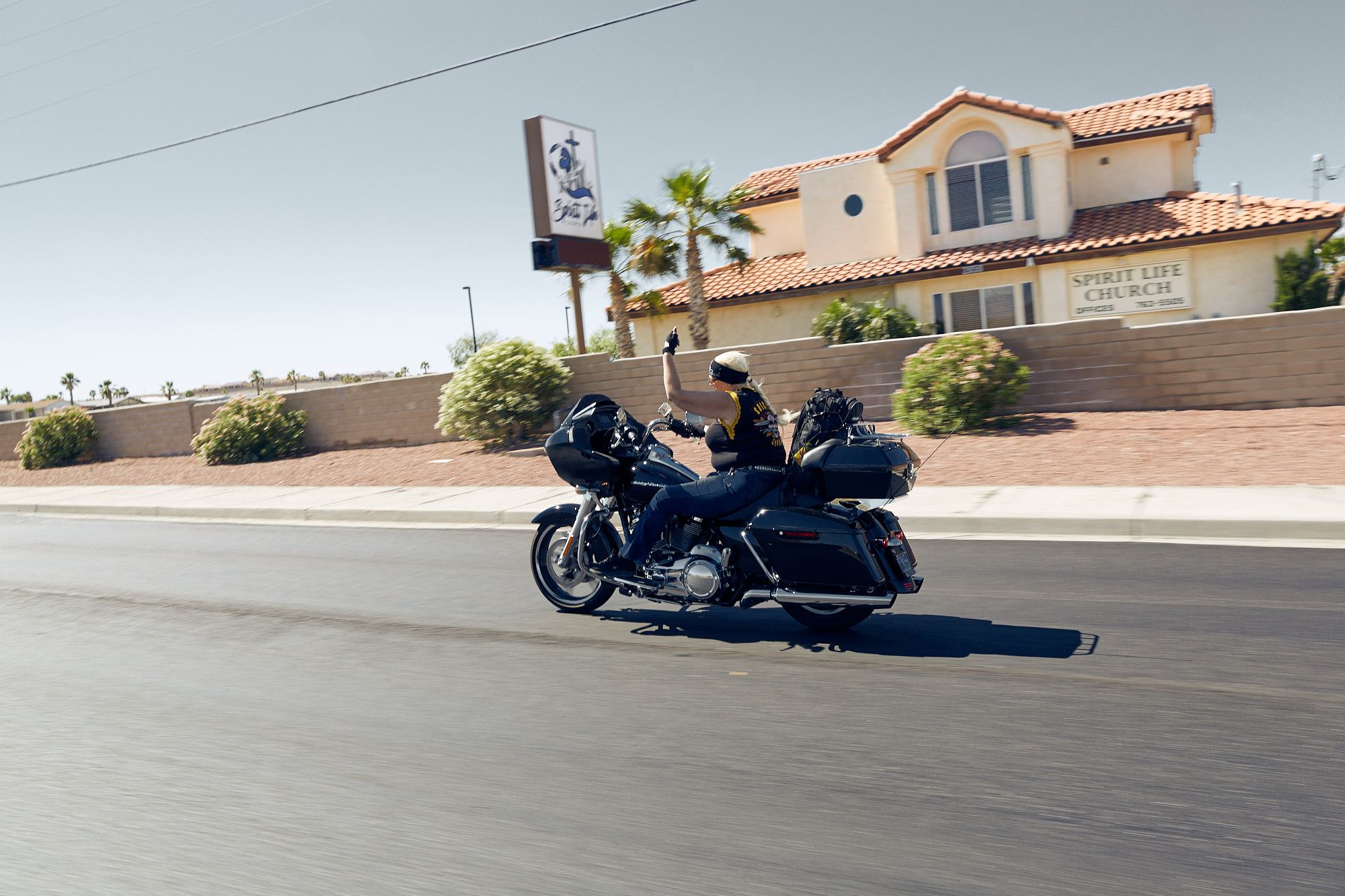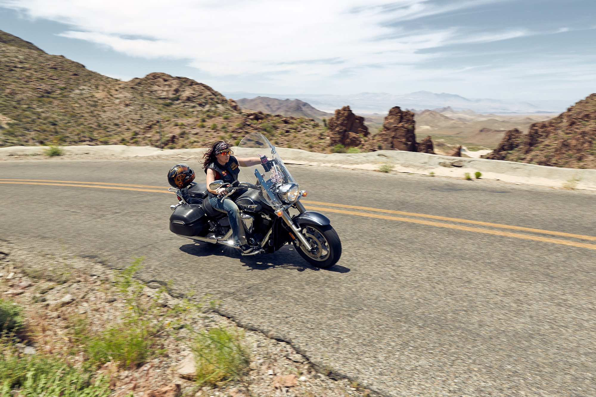 A small female motorcycle group called »Suicide Squad« invited me to join them at the »Laughlin River Run 2019«. I accepted and my first motorcycle trip ever started – roaring Harleys, 103° Fahrenheit and a lot of wind in the face. We rode the bikes through Arizona and Nevada. A story shot by the male on the bitch pad.